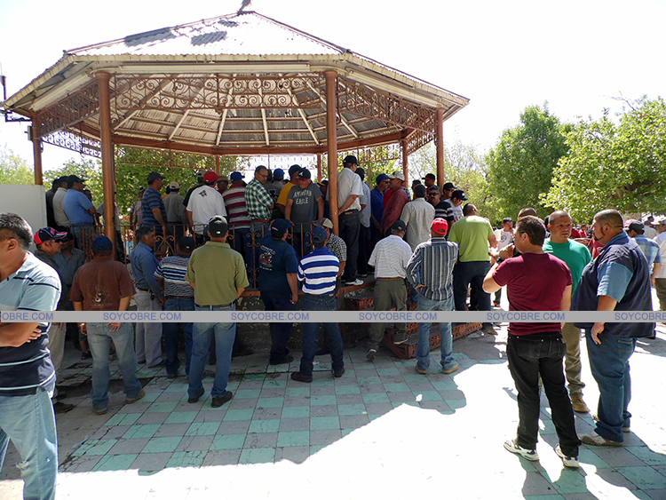 Cananea, Sonora a 04 de Junio de 2014.- El día de hoy la Sección 65 del Sindicato Minero Nacional, convocó a reunión extraordinaria a sus agremiados en la Plaza Juárez, con el motivo de reunirse con representantes de la empresa Chávez Tep, debido al bloqueo a esta compañía que hoy cumplió los nueve días.