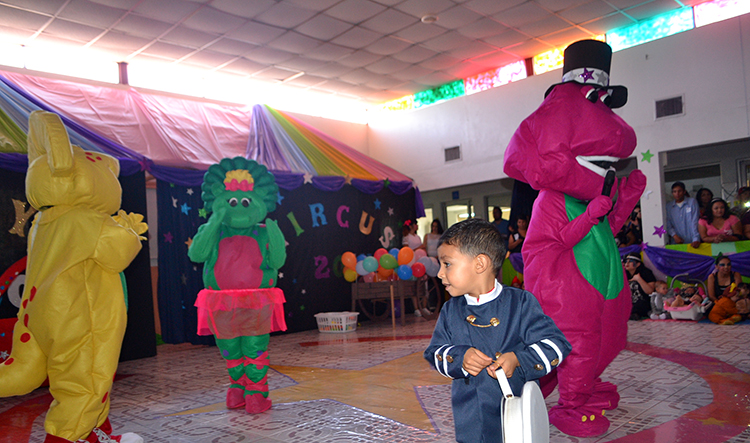 Para el festejo y como cada año se organizó un alegre y colorido festival, que en este caso, fue alusivo al mundo de Barney, donde las propias maestras, brindaron todo un espectáculo en el que brillaron también los niños de cada aula, quienes con su disfraz y caracterización, bailaron y cantaron ante la presencia de sus familias.