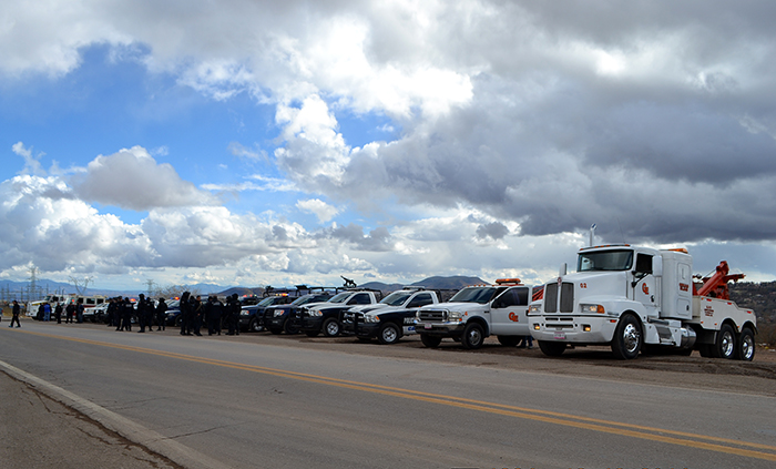 El primer filtro de «Vacaciones Seguras» se realizó en la Carretera Cananea a Imuris, dando el banderazo de salida el propio Alcalde Francisco Javier Tarazón, acompañado de los más altos mandos de cada instancia policial y de rescate.
