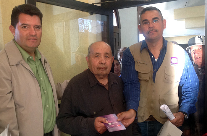 Cananea, Sonora.-El día 28 del mes en curso, más de 40 adultos mayores de Cananea recibieron de manos del Alcalde Francisco Javier Tarazón y del Secretario de Desarrollo Social en Sonora, Héctor Contreras, la tarjeta electrónica del programa CRESER CON ADULTOS MAYORES, consideradas dentro de las 259 tarjetas que se han repuesto por extravió o que han presentado algún problema.