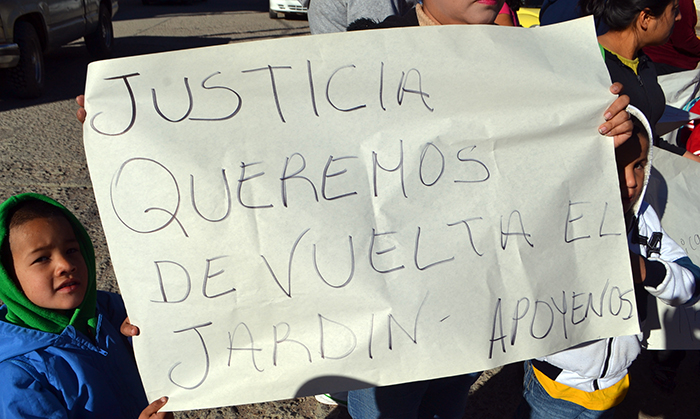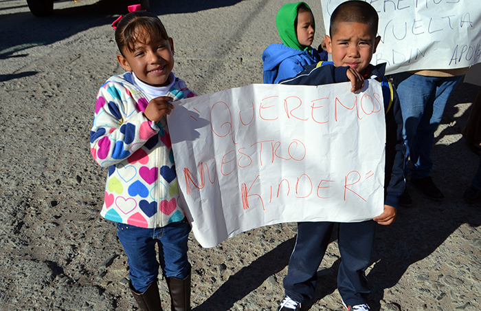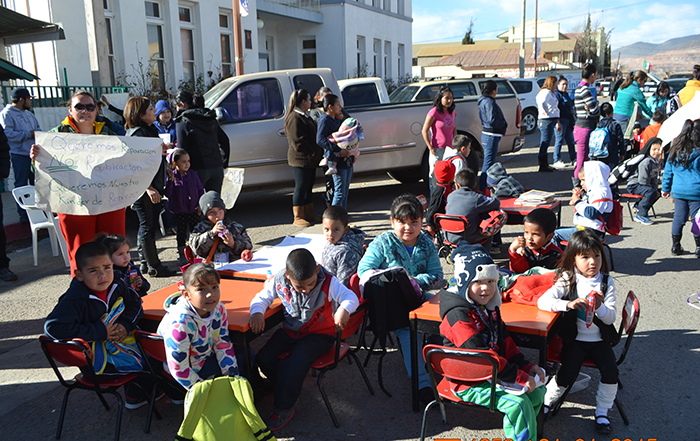 Cananea, Sonora a 21 de enero de 2015.- La mañana de hoy una fuerte manifestación se registró por parte de padres de familia y alumnos del Jardín de Niños Margarita, ubicado en Avenida Juárez entre 5ª y 6ª Este a un costado de Palacio Municipal.