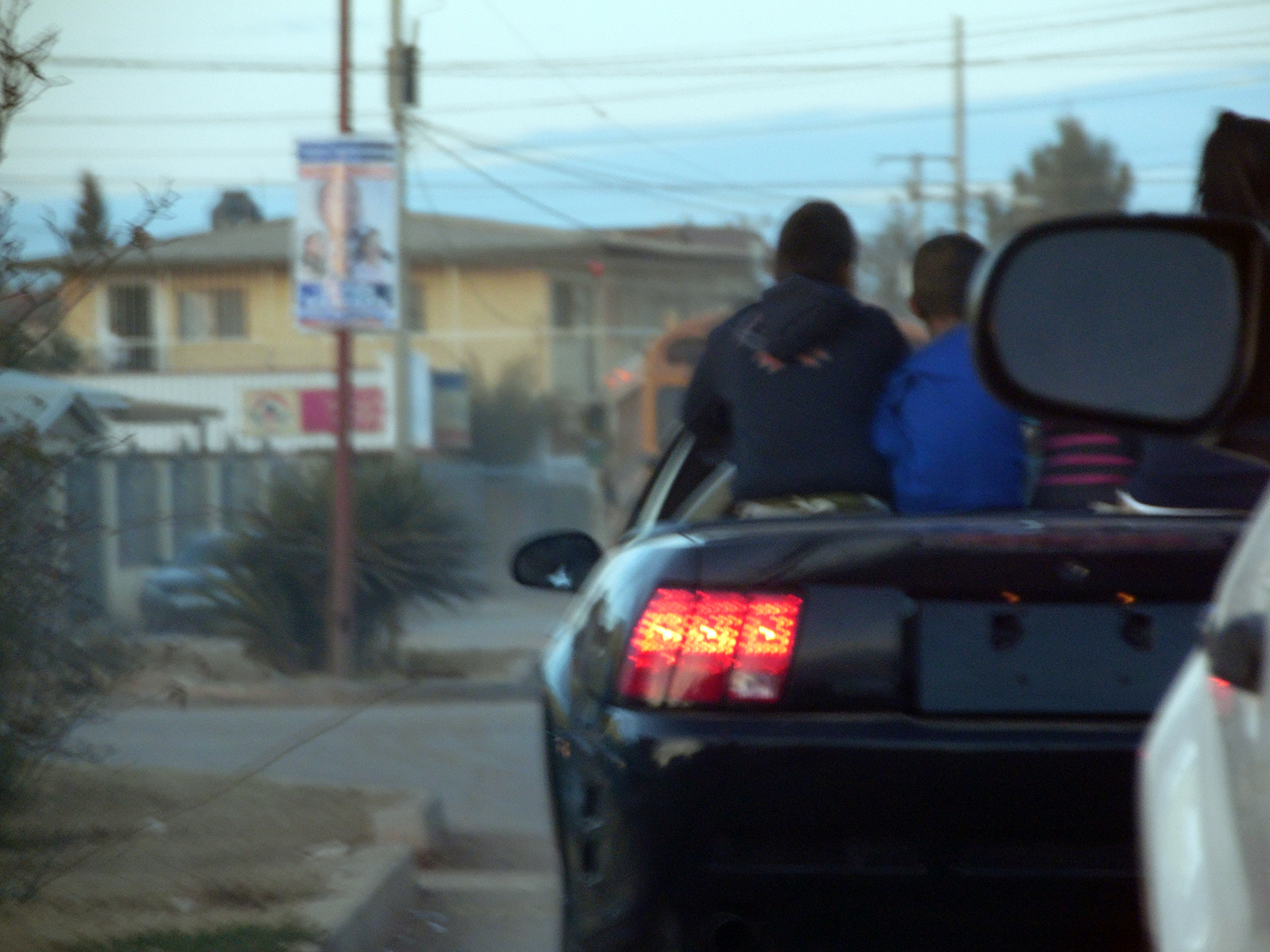 Exceso de velocidad, no uso del cinturón, falta de licencia vigente y no hacer alto reglamentario, son de las infracciones más comunes que se registran además de situaciones de riesgo como la que se observa en la imagen donde un vehículo convertible sin placas, sin la menor precaución «paseaba» a menores de edad en la parte posterior sin medir riesgos.