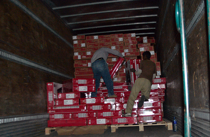 El camión traía en su carga cientos de televisores de pantalla plana, los que fueron recuperados y puestos a resguardo por empleados de la misma empresa de fletes.