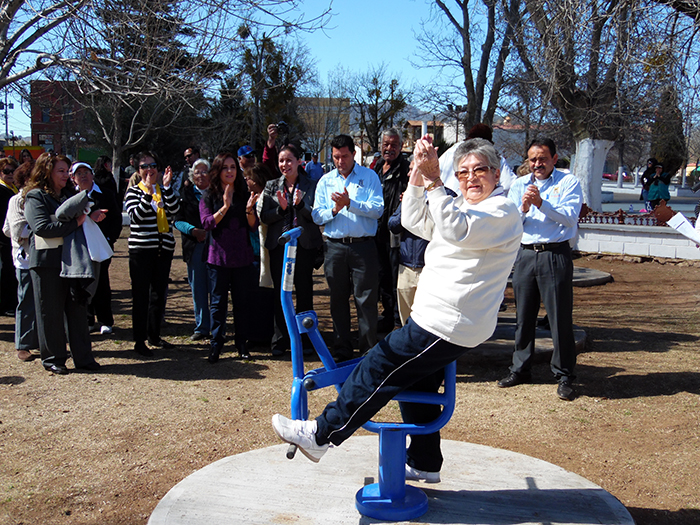 Amables integrantes de INAPAM tuvieron a bien probar los aparatos ejercitadores ante la presencia de autoridades.