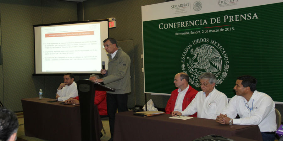 HERMOSILLO, SONORA A 02 DE MARZO DE 2015 .- La Procuraduría Federal de Protección al Ambiente (PROFEPA) multó por un total de 22,959,386 de pesos a la empresa minera Buenavista del Cobre, por el derrame de 40 mil metros cúbicos de una solución de sulfato de cobre acidulada a los ríos Sonora y Bacanuchi, y por diversas irregularidades detectadas durante la revisión de las operaciones de la empresa.