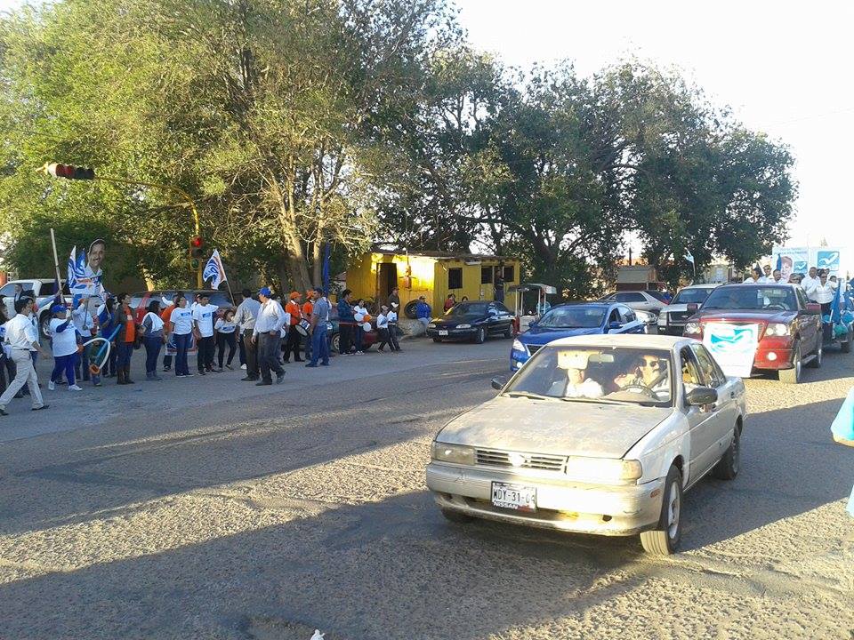 Cananea, Sonora a 27 de Abril de 2015.- Las logísticas de los partidos PAN y de la coalición PRI-PVEM-PANAL chocaron el pasado sábado en los respectivos arranques de campaña de sus candidatos Juan Molina por el blanquiazul y Fernnando Herrera por la coalición. Esto sucedió toda vez que los primeros tenían organizada una valla humana que recorrió algunas calles de la ciudad y finalizó en la 3a. Este, frente al Museo de la lucha Obrera donde se celebró un mitin. Así mismo, por el otro lado se llevó a cabo una manifestación de vehículos que también hizo su respectivo recorrido por la ciudad, lo coincidente fue que ambos eventos masivos, se llevaron a cabo a la misma hora, por lo que hubo momentos en que ambos contingentes se cruzaron primero sobre la Avenida Álvaro Obregón y posteriormente sobre la Avenida Sonora y 3a. Este, donde además del congestionamiento, hubo enfrentamientos verbales entre integrantes de uno y otro grupo.