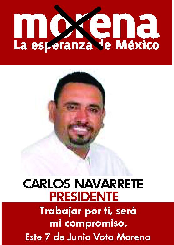 Cananea, Sonora a 07 de mayo de 2015.- El Partido Movimiento de Regeneración Nacional (MORENA) en Cananea, en las presentes elecciones, tiene como Candidato a la Presidencia Municipal a Carlos Navarrete, un personaje de la política y de la lucha social-obrera que ha demostrado que es incansable, luchón y tesonero, y trae consigo un proyecto político que brinda opciones viables, reales y atractivas a la comunidad.