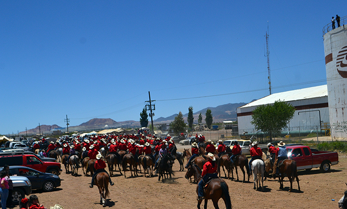 Cananea, Sonora a 17 de Mayo de 2015.- Más de 300 jinetes se estima participaron en una cabalgata organizada por el Sr. Tino Cortés y otros miembros de ejidos locales, misma que partió a muy temprana hora en el Ejido Emiliano Zapata este domingo, para culminar en Cananea pasadas la 13:00 hrs. 1:00 de la tarde.