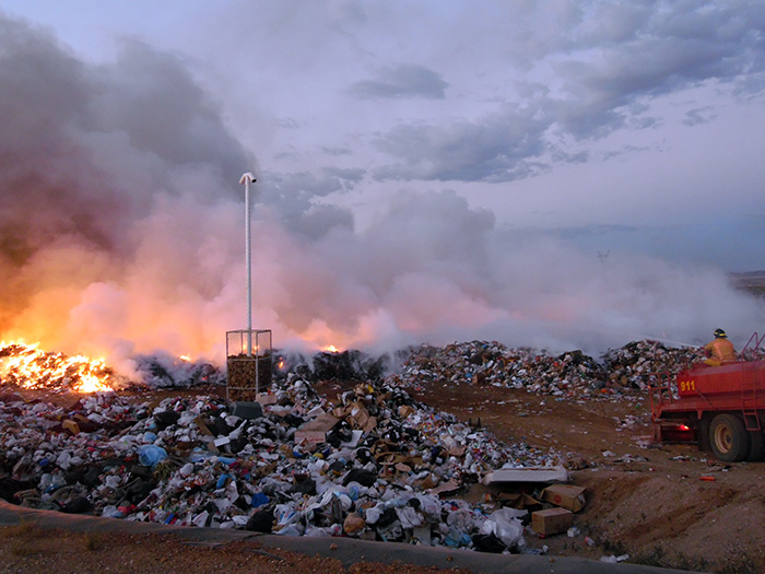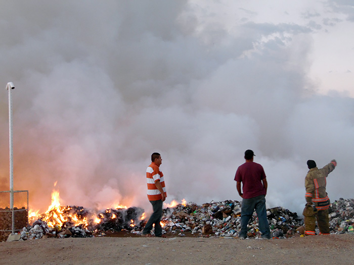Cananea, Sonora a 14 de Junio de 2015.- A poco más de 20 días de haberse aperturado, el Relleno Sanitario local se prendió en llamas la tarde de este domingo, por lo que fue necesaria la intervención de varias unidades de cuerpos de rescate.