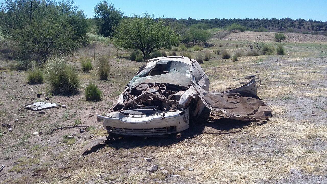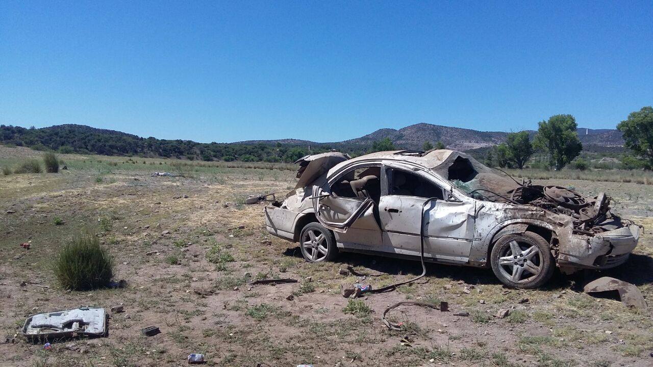 Canananea, Sonora a 14 de Junio de 2015.- Un trágico accidente carretero se suscitó este domingo pasadas las 9:00 de la mañana, cuando un grupo de jóvenes transitaba a bordo de un Ford Lincoln tipo Sedán, modelo 2001, sobre la carretera Cananea a Bacoachi y aproximadamente en el kilómetro 199, el conductor del vehículo, perdió el control volcando la unidad.