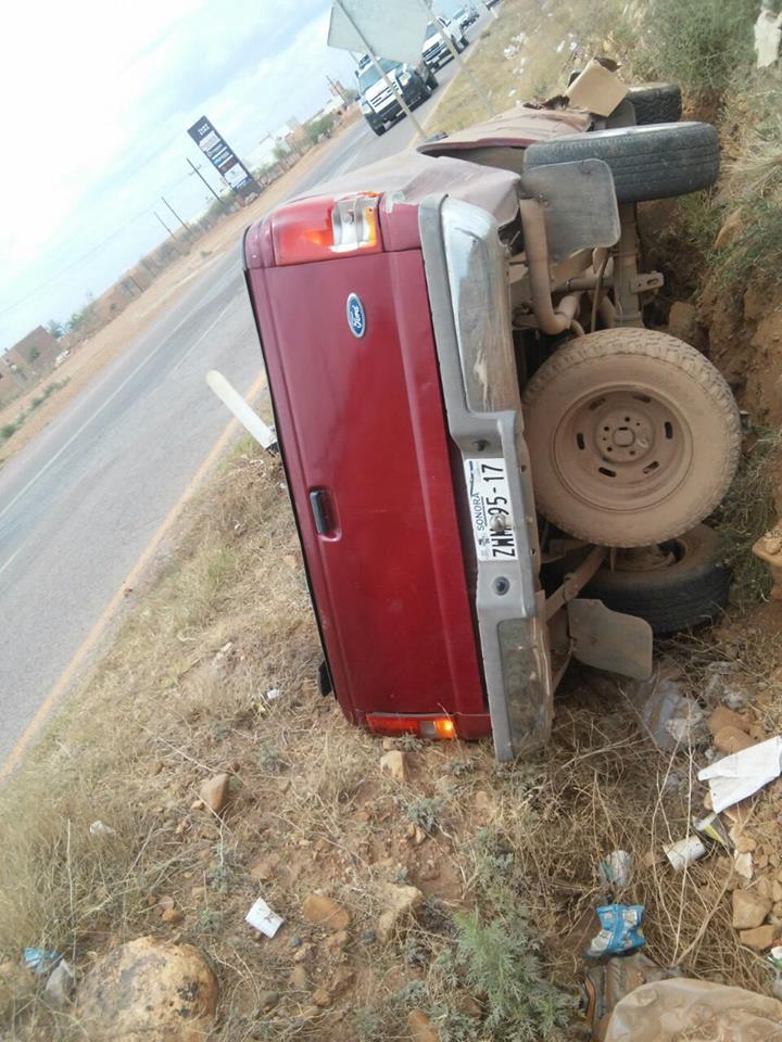 Cananea, Sonora a 08 de Junio de 2015.- Un conductor que transitaba en su vehículo un Ford Ranger color guinda fronterizo, volcó la unidad en la Carretera Cananea a Agua Prieta, a la altura del Parque Tamosura, pasadas las 2:00 de la tarde de este lunes.