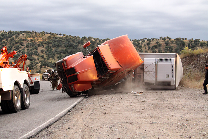 Según la versión policial antes de caer de costado este tráiler que tenía como destino el estado de Chihuahua, golpeó a otro más que provenía de Cd. Obregón el cual estuvo a punto de caer a un barranco, situación que no se dio gracias a la pericia del conductor que pudo controlarlo.