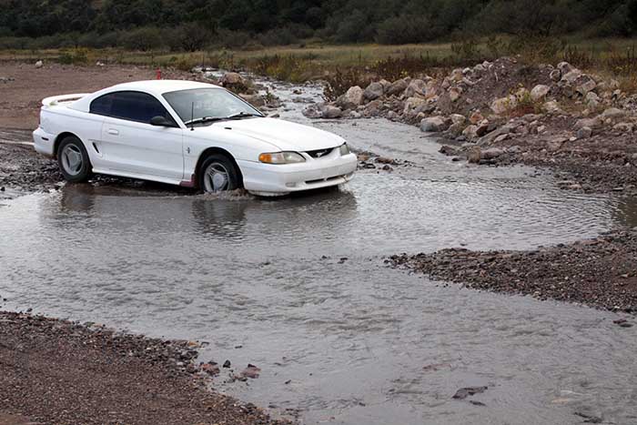Cananea, Sonora a 20 de Octubre de 2015.- Vecinos del Ejido 16 de Septiembre conocido como «Los Nogales», se quejan amargamente ya que en el camino vecinal que conduce del municipio de Cananea hasta el municipio de Arizpe y que pasa por su ejido, además de ser utilizado para trabajos de construcción de nuevo represo de la empresa minera Buenavista del Cobre, generando mucho tráfico e inseguridad por las altas velocidades con las que manejan los conductores de maquinaria pesada, en los últimos días, un arroyo de aguas residuales está atravesando dicho camino vecinal ocasionando que los vehículos particulares que por ahí transitan tengan contacto directo con las aguas ácidas.