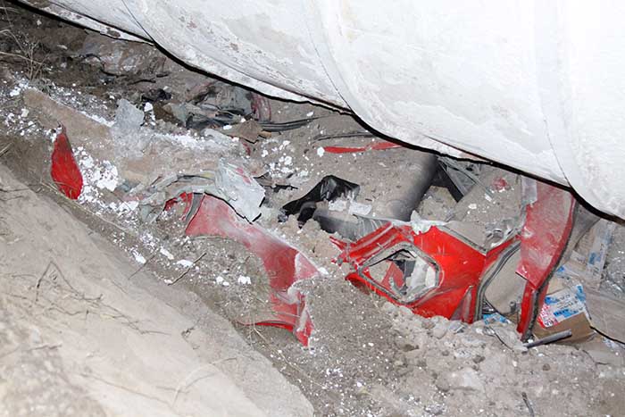 Los hechos ocurrieron cuando el conductor de la pipa perdió el control y volcó sobre la rúa aplastando literalmente al Ford Fiesta, en el que viajaba solo el conductor, el cual originario de Hermosillo, Sonora, de 33 años de edad.