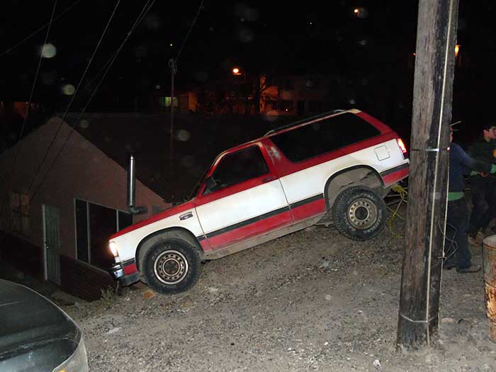Cananea, Sonora a 18 de diciembre de 2015.- Cerca de las 8:00 de la noche de este viernes, un vehículo de la marca Blazer de modelo atrasado, estuvo a punto de desbarrancar a un costado de la Calle 5ª. Oeste y Avenida Durango, cuando el conductor de 83 años de edad, perdió el control de la unidad.