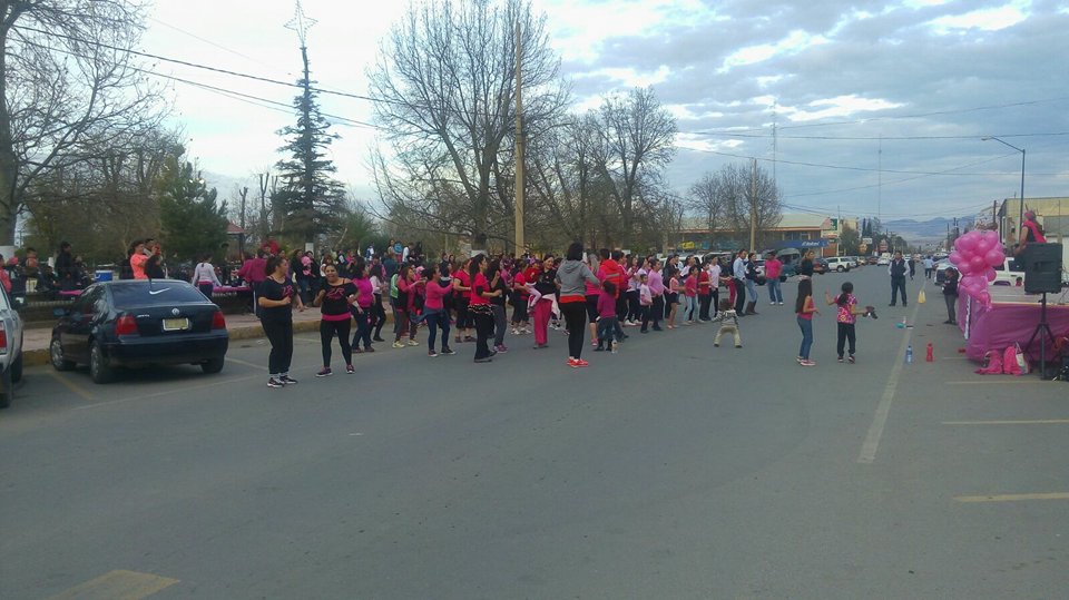 Cananea, Sonora a 21 de Febrero de 2016.- Todo un reto y una aventura se vivió el viernes 19 de febrero en inmediaciones de la Plaza Jardines de Juárez frente a Palacio Municiopal. Con el firme objetivo de seguir promoviendo las actividades deportivas masivas en Cananea, así como brindar espacios de sensibilización a la comunidad en general. Cerca de 60 personas se dieron cita para llevar a cabo el ZUMBATON ROSA en apoyo a la lucha contra el cáncer celebrada en este mes de Febrero.