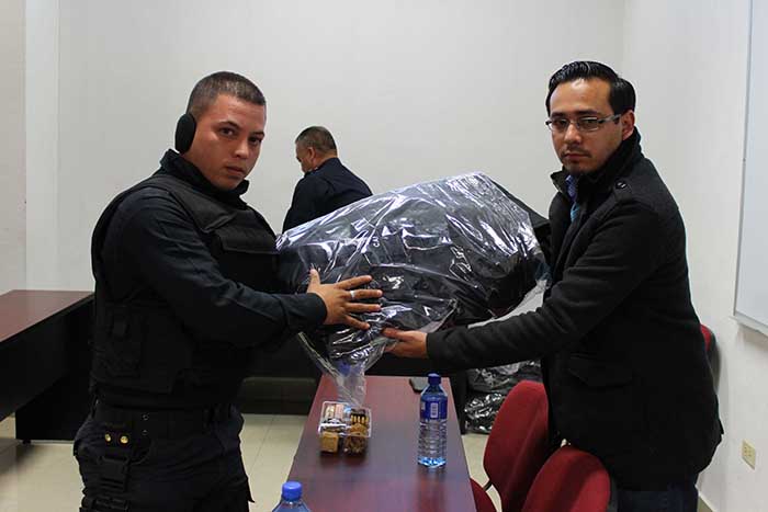 Cananea, Sonora a 04 Febrero, 2016.- La tarde de este jueves, en representación del Alcalde, el Secretario del H. Ayuntamiento, Marcial Valdez, y la Contralor Municipal, Janett Campas, acudieron a las instalaciones de Comandancia, donde el Comandante Renato Serrano, así como personal administrativo y de comisaría, recibieron 84 piezas de uniformes completos, camisa, pantalón, botas y chaleco.