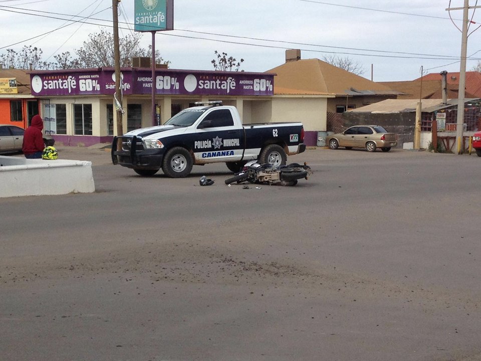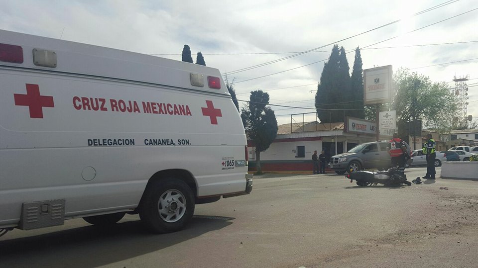 Cananea, Sonora a 12 de Marzo de 2016.- La tarde de este viernes, un motociclista que circulaba sobre la Avenida Juárez, fue arrollado por un vehículo que aparentemente hizo caso omiso del alto reglamentario sobre la Av.