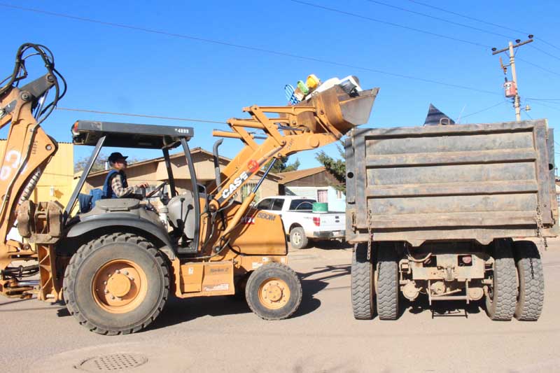 Cananea, Sonora.- Mucha cooperación y apoyo mostraron los habitantes de la Calle Alberto Stone esta tarde, en la colonia conocida como “La Roca”, donde la cuadrilla de limpieza de funcionarios limpiaron recogiendo escombro, maleza, hierbas secas y basura en general de la calle y alrededores, tal como les permitió el tiempo abarcar.