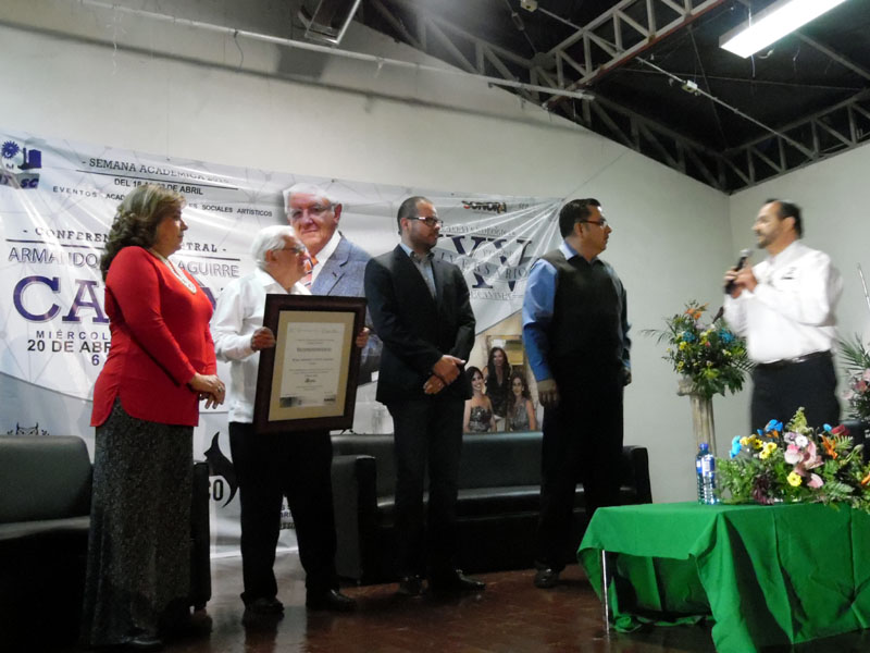 Agradeció la hospitalidad del Director del plantel Maestro Ramón Enrique López Fuentes, del Alcalde Fernando Herrera y de la que catalogó una de sus mejores amigas la Ing. Imelda González, oriunda cananense y quién actualmente funge como Directora de Alcoholes en el Estado de Sonora, quién dijo además de ser una mujer profesionista valiosa, contribuyó en mucho para que él pudiera estar este día en Cananea. Así mismo, el propio Director le entregó un reconocimiento.