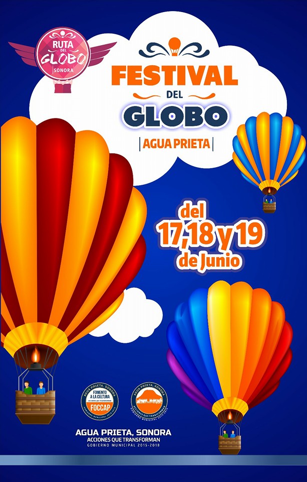 Hermosillo, Sonora a 11 de Junio de 2016.- Con exhibición de vuelos, juegos infantiles, área gastronómica, música y demás actividades para toda la familia, del 17 al 19 de junio se realizará en Agua Prieta el Festival del Globo, anunció Héctor Platt Mazón, Subcoordinador General de Operaciones de la Comisión del Fomento al Turismo (Cofetur).
