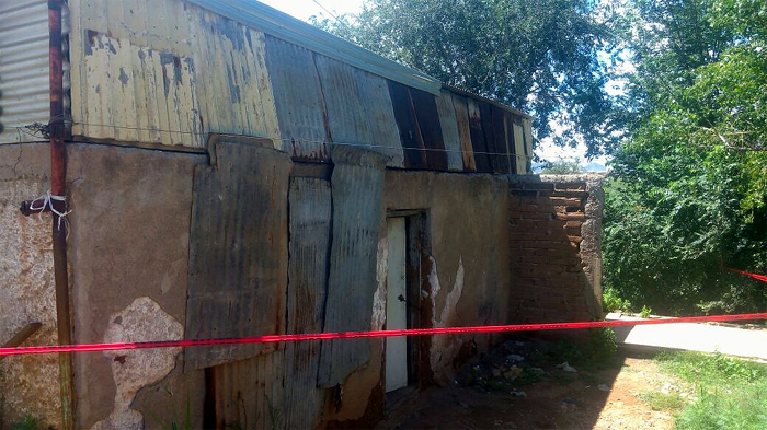 Cananea, Sonora a 13 de Agosto de 2016.- Alrededor del mediodía de este sábado, Bomberos Voluntarios rescataron a un adulto mayor de su propia vivienda, en la cual una pared y parte del techo se derrumbaron debido a la humedad y mal estado de la casa.