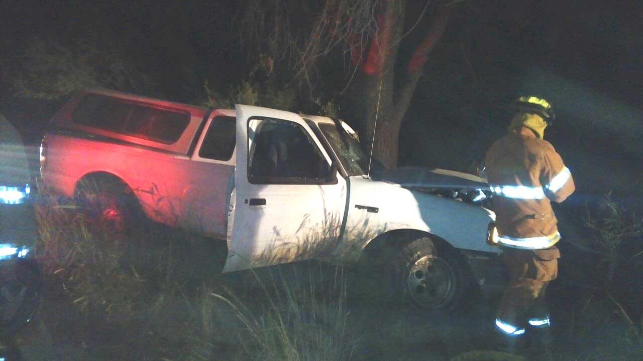Cananea, Sonora a 28 de Agosto de 2016.- Pasadas las 3:00 de la mañana de este domingo, la historia se volvió a repetir y un accidente automovilístico se registró en la Carretera Cananea a Bacoachi, poco antes de llegar al primer vado, en las inmediaciones de la puerta de entrada del Rancho de la Universidad de Sonora, donde participó un vehículo tipo pickup de la marca Ford Ranger color blanco, en el que viajaban el conductor de nombre Luis Alfonso de 27 años de edad, así como Ashly de 17 años y Adriana de 16.