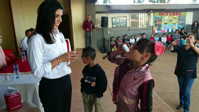 Cananea, Sonora a 10 de Octubre de 2016.- Encabezada por la Primera Dama Gabriela Cabrera, por personal Administrativo del Sector Salud de esta localidad, teniendo como anfitrión al Profesor Juan Esquer, así arrancó la 3a. Semana Nacional de Vacunación, en la escuela Gilberto Castillo, ubicada en la colonia La Roca.