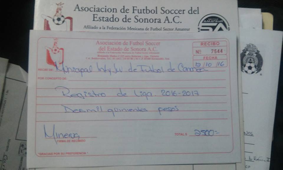 Cananea, Sonora a 12 de octubre de 2016.- Este miércoles la Liga Municipal Infantil y Juvenil de Fútbol recibió su afiliación a la AfeSonora, así mismo, se les reconoció con una felicitación de parte de la CODESON, por el gran esfuerzo y labor realizada en esta liga, que es una de las más grandes que alberga a más de 500 deportistas.