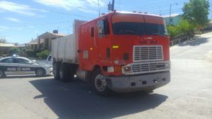 Cananea, Sonora a 21 de marzo de 2017.- Pasadas las 11:00 de la mañana de este martes, un choque se registró en la Calle 4ª. Oeste, entre Avenida Juárez, y Durango, donde participó un carro tipo pickup Ford Explorer y un dompe de carca.
