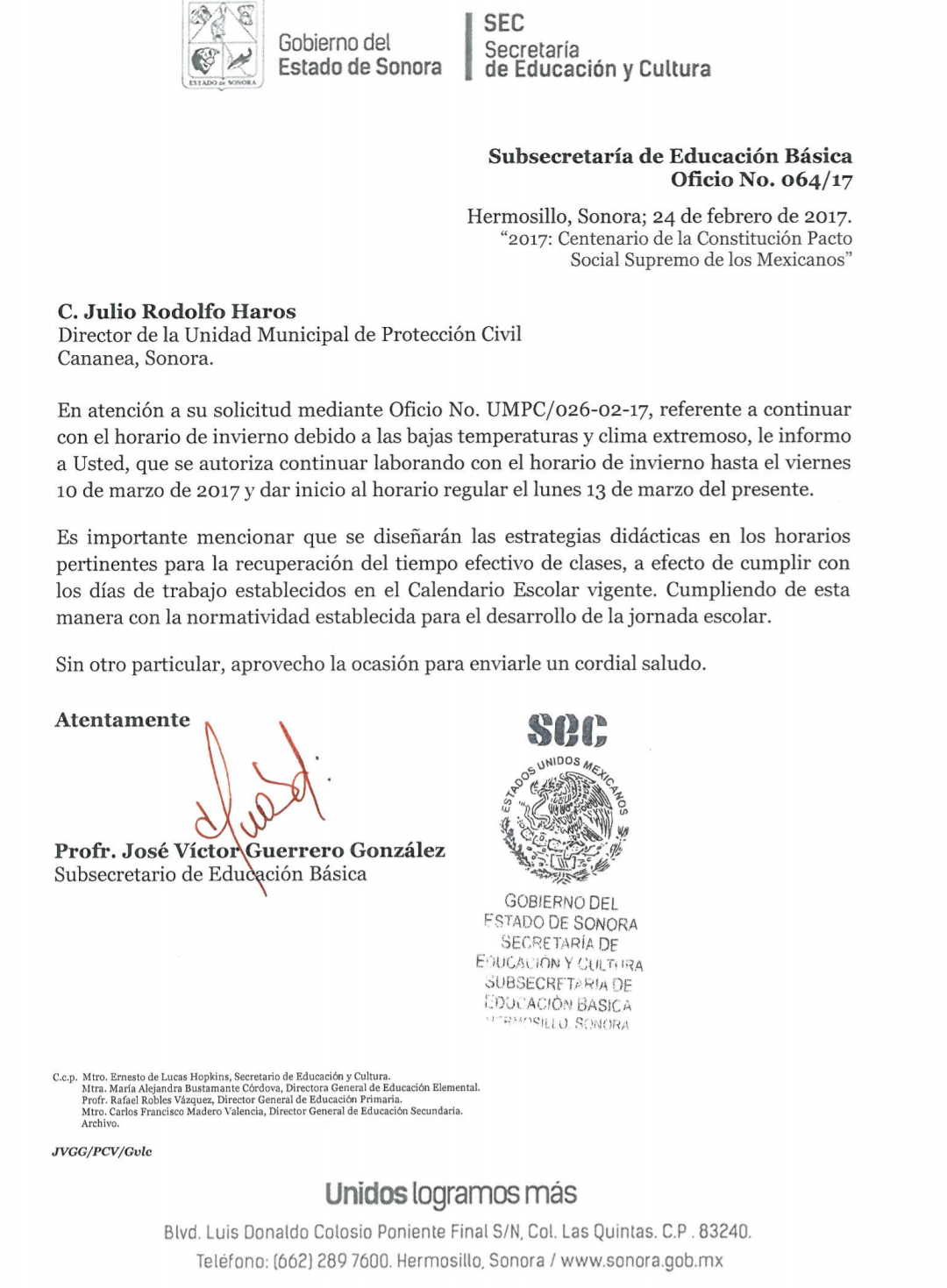 Cananea Sonora a 12 de marzo de 2017.- Después de que a petición de la Dirección Municipal de Protección Civil se otorgara una prórroga para que el horario de invierno se extendiera hasta el pasado viernes 10 en Cananea, este lunes, los alumnos de pre escolar, primaria y secundaria, ya regresan a su horario normal de verano, igual que en el resto del estado.