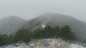 Cananea, Sonora a 09 de mayo de 2017.- Este martes 09 de Mayo, una ligera nevada se registró en la Sierra La Mariquita de Cananea, en la parte más alta donde se ubica el Observatorio Astrofísico Guillermo Haro que cuenta con una altitud de 2480 metros sobre el nivel del mar.