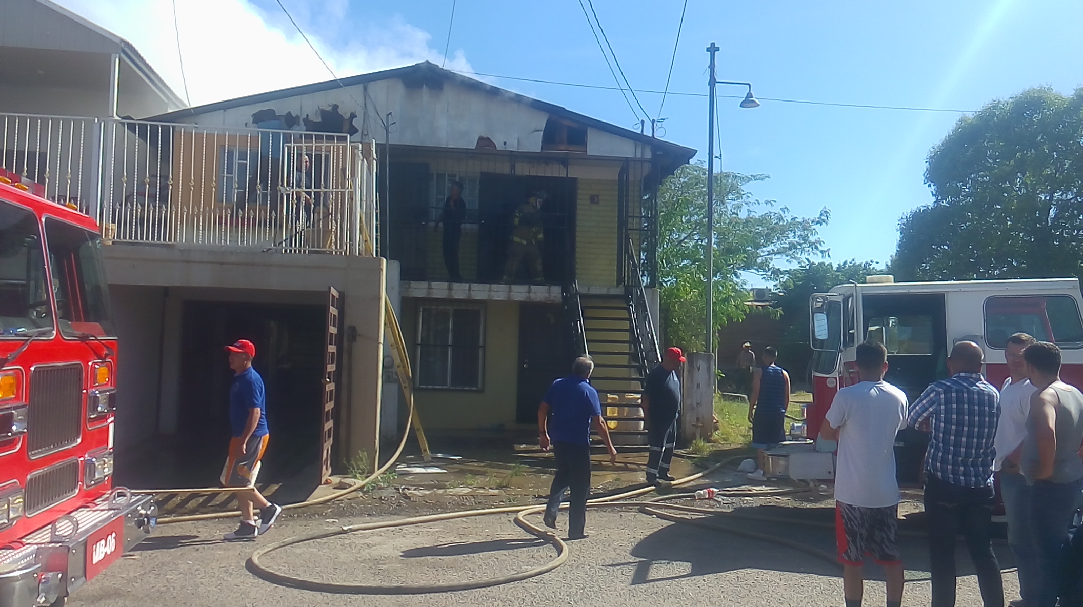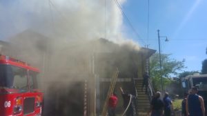 Cananea, Sonora a 21 de mayo de 2017.- La tarde de este domingo, un incendio se registró en la calle Parque Azul, entre Eureka y Kirk de la colonia Minera 1, donde se vio afectado un edificio de dos plantas con 4 departamentos, donde en uno de ellos ubicado en la planta alta, fue donde se originó el siniestro.