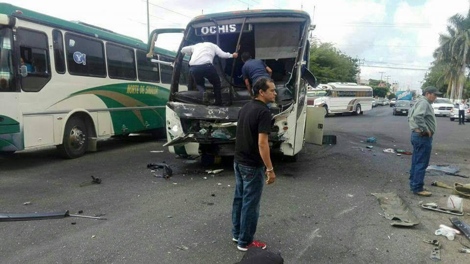 Guasave, Sinaloa.- Dos persona sin vida, entre ellas un bombero y once lesionadas fue el resultado de un aparatoso accidente entre un vehículo del cuerpo de Bomberos de Guasave y un autobús.