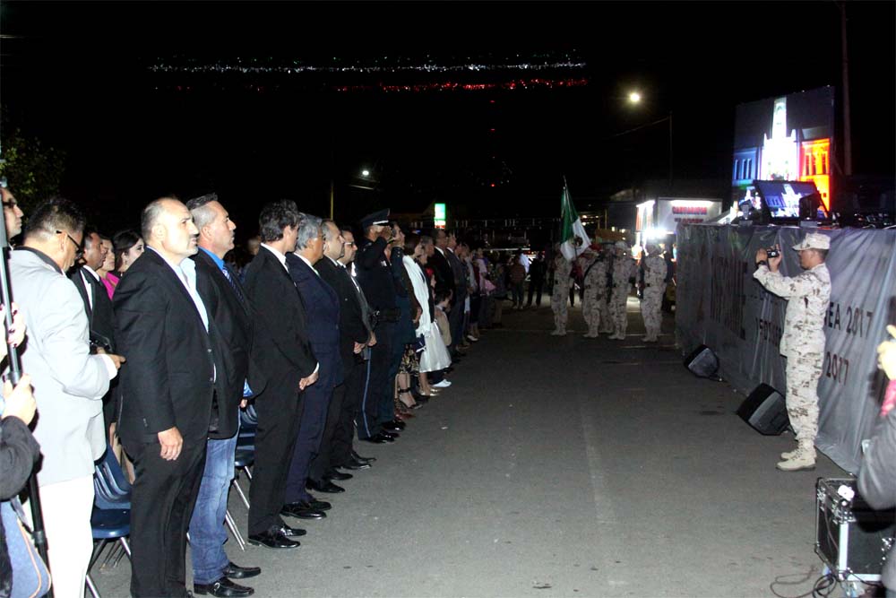 Los honores al lábaro patrio estuvieron a cargo de la escolta de la Secretaría de la Defensa Nacional e hicieron acto de presencia el Diputado Local Javier Dagnino, ex alcaldes del municipio y ex Diputados.