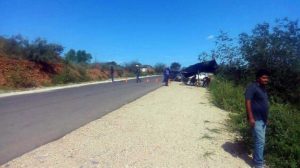 Cananea, Sonora a 14 de Septiembre de 2017.- Esposa, madres e hijas de mineros que permanecen en una guardia en uno de los accesos a la mina Buenavista del Cobre, bloqueando el paso de quienes intentan por esa vía ingresar a la planta, se dicen amedrentadas pues, persona ajenas han vertido al menos en dos ocasiones sustancias justamente en el lugar donde ellas realizan la guardia.
