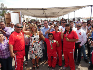 La mandataria, saludó personalmente a cada persona que asistió a darle la bienvenida y recibió varias propuestas y solicitudes de personas en particular y de asociaciones y grupos, además reconoció el trabajo y esfuerzo de los jóvenes paralímpicos, ganadores de varias medallas para Sonora.