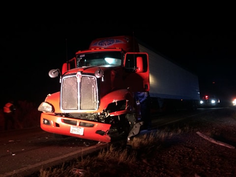 Fue el chófer del tracto camión de una empresa transportadora de hielo de la ciudad de Hermosillo, quién habría invadido carril para ganar el paso en un tramo en reparación, impactando con la parte frontal izquierda, a un carro tipo sedán donde viajaban tres personas incluyendo un menor, cuyo vehículo resultó con pérdidas totales.