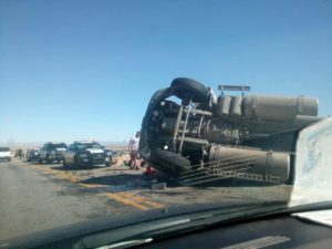 Agua Prieta, Sonora a 05 de Febrero de 2018.- Tras darse el volcamiento de un tráiler doble semi remolque cargado con cerveza de la marca Budweiser la mañana de este lunes sobre el kilómetro 18 de la Carretera Agua Prieta Cananea, en escasos minutos la situación se volvió en un caos donde decenas de personas se aprontaron para llevarse consigo cajas completas del contenido etílico.
