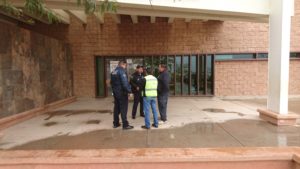 Cananea, Sonora a 14 de Febrero de 2018.- Al menos 7 empleados de BBV Bancomer, ubicado en la Av. Benito Juárez y 3a. Oeste, permanecen hospitalizados por presunta intoxicación con gas LP.