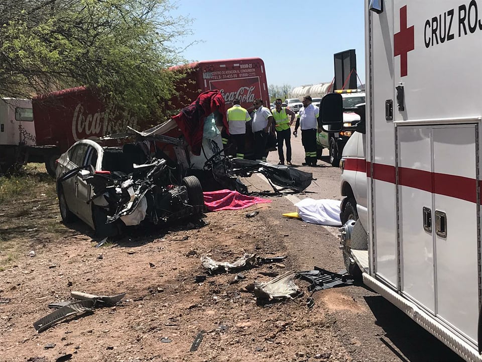 Los hechos ocurrieron cuando un vehículo sedan de la marca Nissan Sentra de reciente modelo, se impactó de manera frontal, contra un camión de una empresa refresquera.
