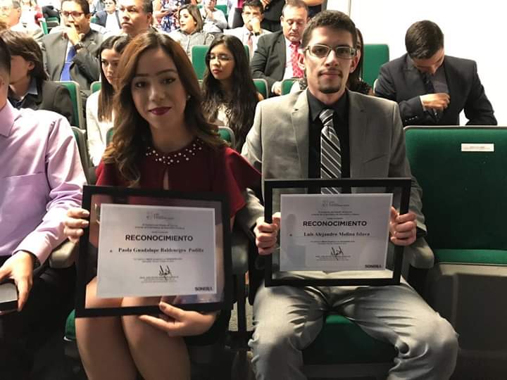 Cananea, Sonora a 24 de Octubre de 2018.- Este miércoles los estudiantes del Instituto Tecológico Superior de Cananea Paola Guadalupe Baldenegro Padilla y Luis Alejandro Molina Islava, recibieron reconocimiento al Mérito Académico 2018, que les fue entregado por el Subsecretario de Educación Media Superior y Superior de la Secretaría de Educación y Cultura del Estado Mtro. Onésimo Mariscales Delgadillo.