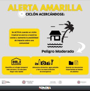 emitió alerta Amarilla y Azul para los 72 municipios de Sonora, ante la posible trayectoria del