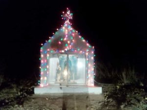 Cananea, Sonora a 24 de Noviembre de 2018.- Mineros que laboran para el departamento de Lixiviación de Mina María, han hecho ya una tradición en esta temporada, el adornar con luces la capilla que se encuentra dentro de la planta minera y que venera a la Virgen de Guadalupe y a San Judas Tadeo.