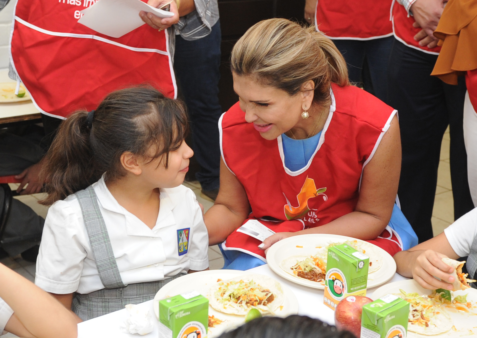 Además, la titular del Ejecutivo Estatal visitó la escuela primaria «Club 20-30», donde acompañada por Karina Zárate Félix, directora general de DIF Sonora; Margarita Velez de Mariscal, presidenta de DIF Cajeme; y de Sonia García, directora del plantel; supervisó el arranque del programa de Desayunos Escolares, el cual beneficia diariamente a 141 mil estudiantes en Sonora.