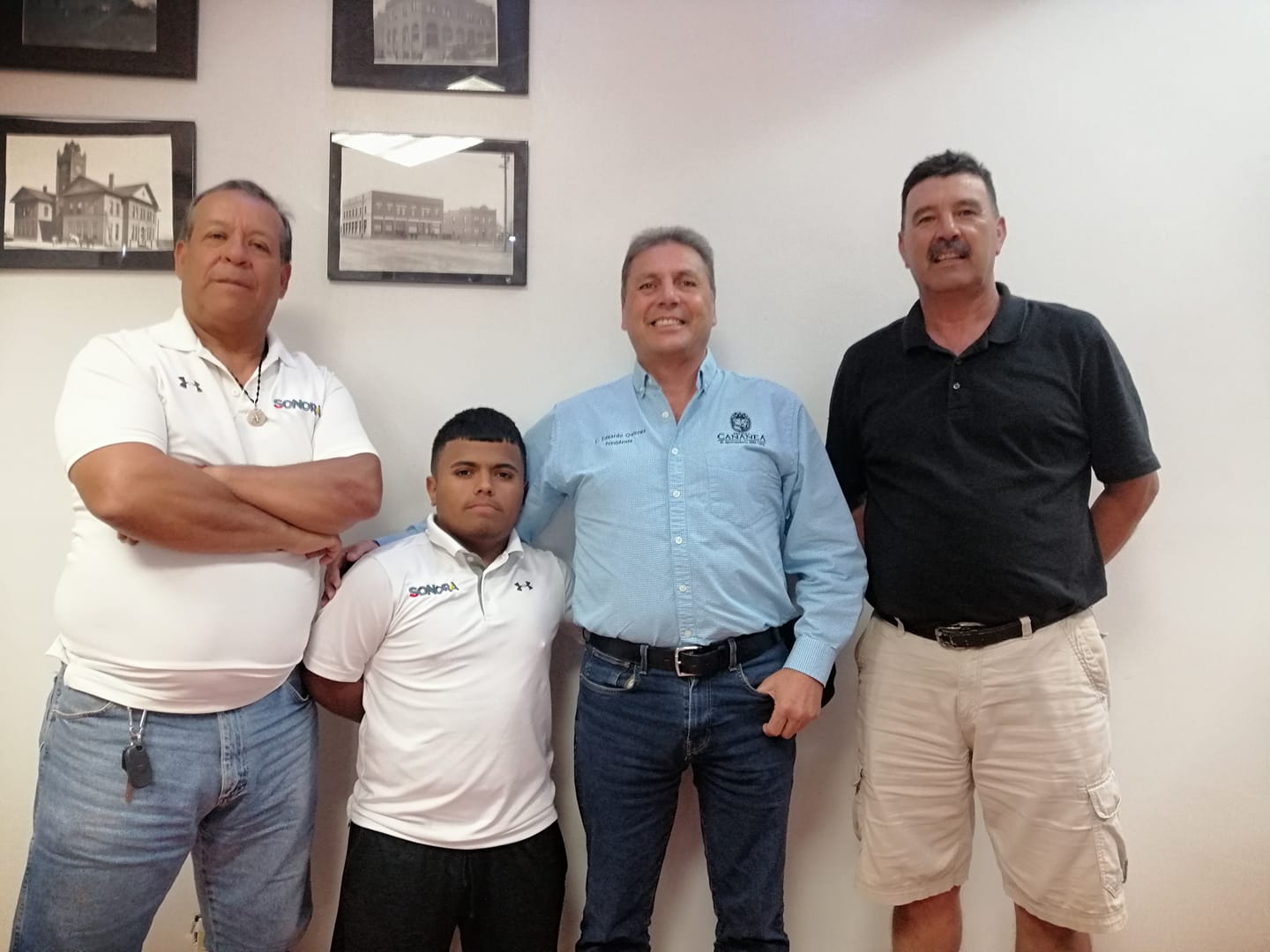 Hoy el deportista, junto con su entrenador Prof. «Máquina Morales», se reunieron en Palacio Municipal, con el Presidente Eduardo Quiroga Jiménez y con el Director del Deporte Profr. José Luis Valencia, ahí el Alcalde se dijo muy orgulloso del talento y el esfuerzo que se hace para representar a Cananea, destacando que cuentan con su apoyo.