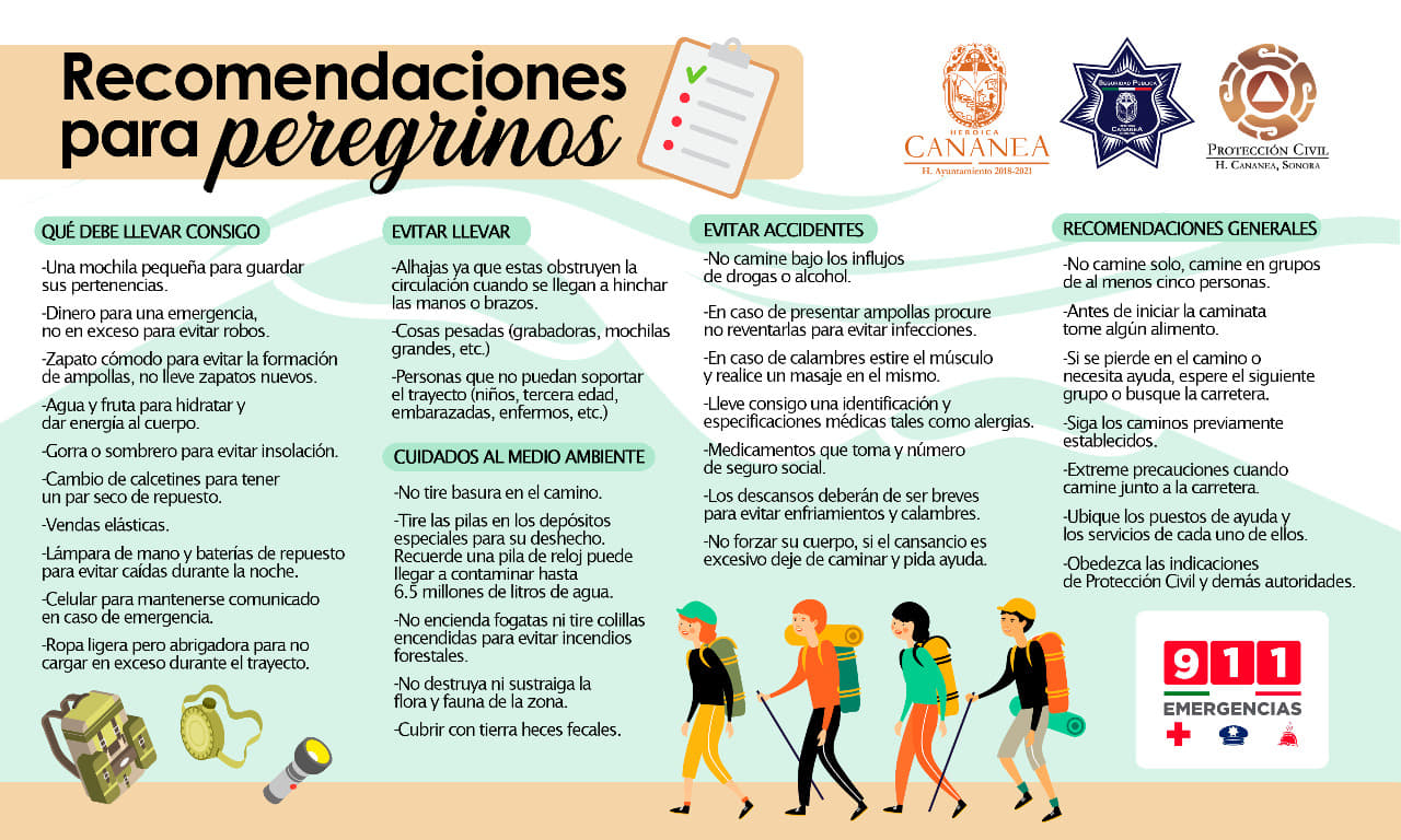 Eduardo Quiroga, Alcalde de Cananea, explicó que los principales riesgos que se tienen los peregrinos son atropellamientos, lesiones por caída, enfermedad, fatiga, cólera, intoxicaciones entre otros.