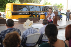 La gobernadora Pavlovich entregó un autobús escolar, a través del programa Movilidad y Vehículos Escolares Rurales (Moveer), en beneficio de las comunidades de Guisamopa, Cajón de Onapa, El Valle de Tacupeto, Santo Tomás, Sehuadéhuachi y La Mesita.