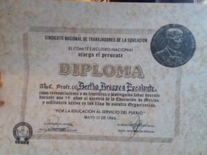 Destacando su excelente labor como maestra en la materia de Biología en Secundaría “Mártires de 1906” hasta el año de 1987.