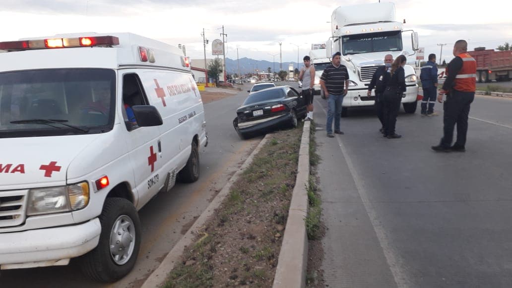 Cananea, Sonora a 14 de mayo de 2020.- Un choque múltiple se generó la tarde de este jueves, en la prolongación del Blvd. Lázaro Gutiérrez de Lara, dónde un vehículo sedan, intentó integrarse al carril central, impactando un tracto camión.